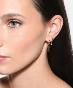 NAVA JOAILLERIE Mini Créole Maria Croix Diamant Or Jaune (vendue à l’unité)