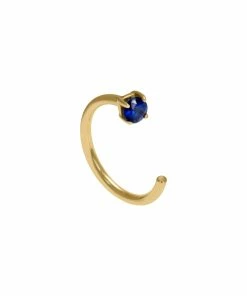 Boucle d’oreille demi-créole en or jaune sertie d’un saphir bleu.
