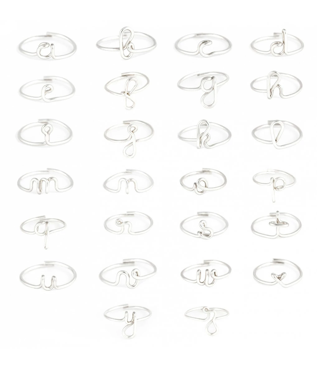 Bague composée d’un seul et même fil d’argentium, formant une lettre minuscule.