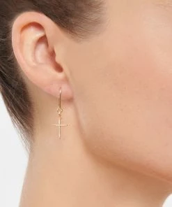 Boucles d’oreilles dormeuses en gold filled, avec petites croix. Fermoirs crochets.