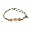Bracelet sur cordon de soie et lurex, agrémenté d’un fil d’or gold filled formant les mots “Maman”. Cordon ajustable par nœud coulissant.