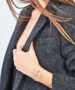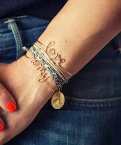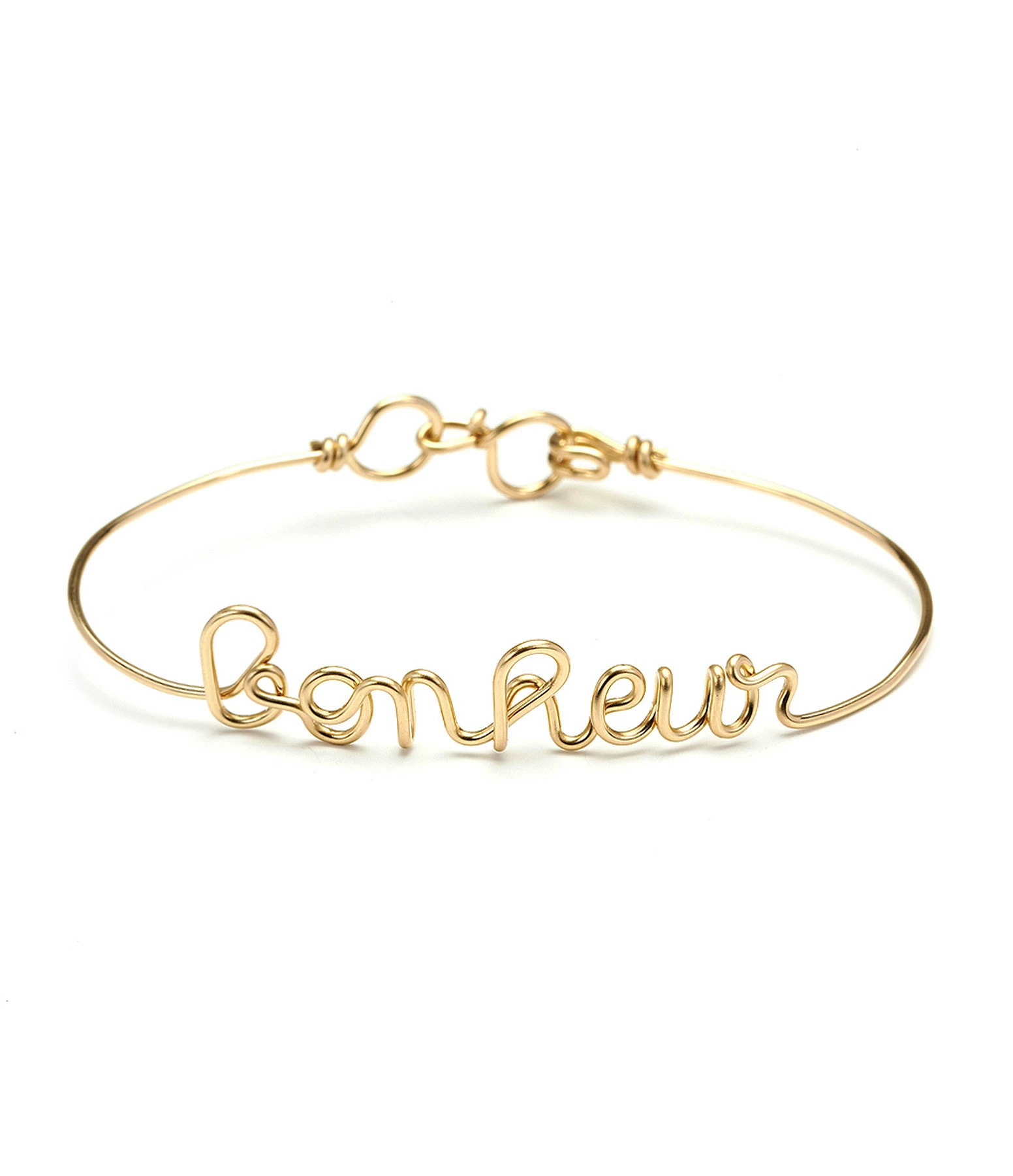 Bracelet jonc composé d’un seul et unique fil d’or gold filled, formant le mot “Bonheur”. Se porte ajusté.