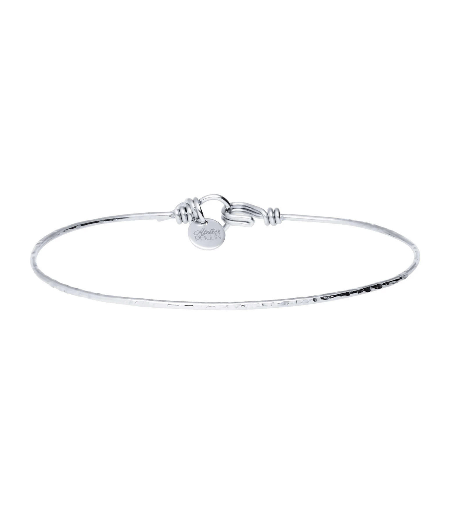 Bracelet jonc composé d’un seul et unique fil d’argent martelé. Se porte ajusté. Collection “Nude”.