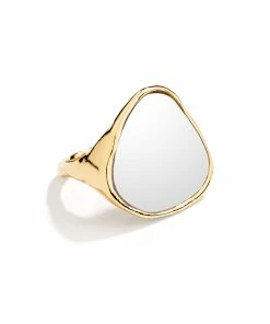 Bague dorée parée d’un véritable miroir.