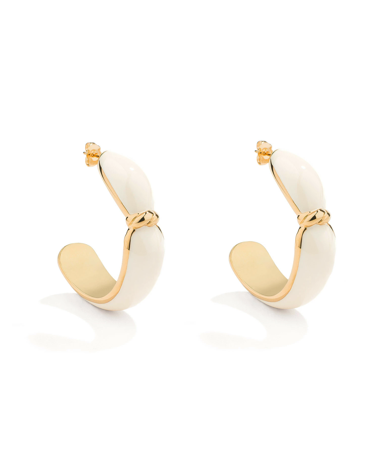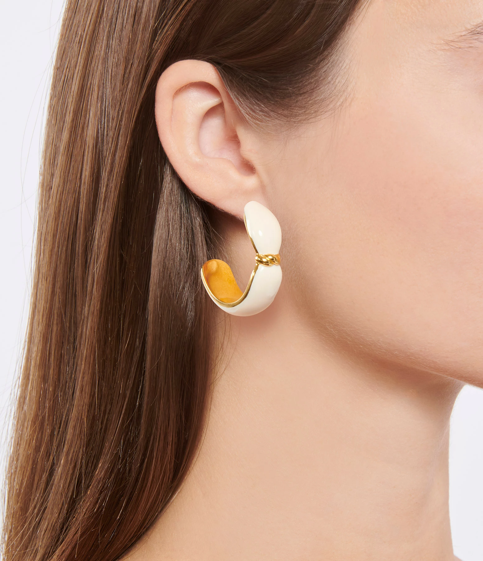Créoles en bakélite ivoire et détails torsadés dorés. Fermoirs poussettes.
