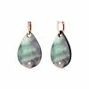 Boucles d’oreilles en bakélite ivoire avec détails dorés martelés. Fermoirs poussettes.