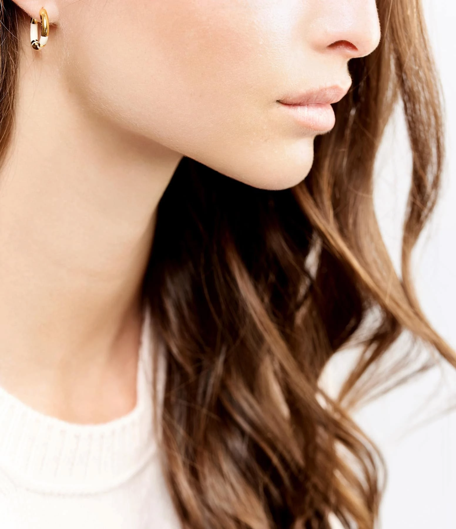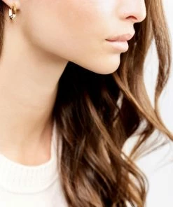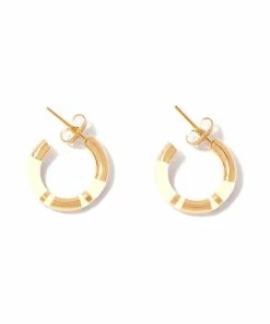 Créoles dorées avec rayures en bakélite ivoire. Fermoirs poussettes.