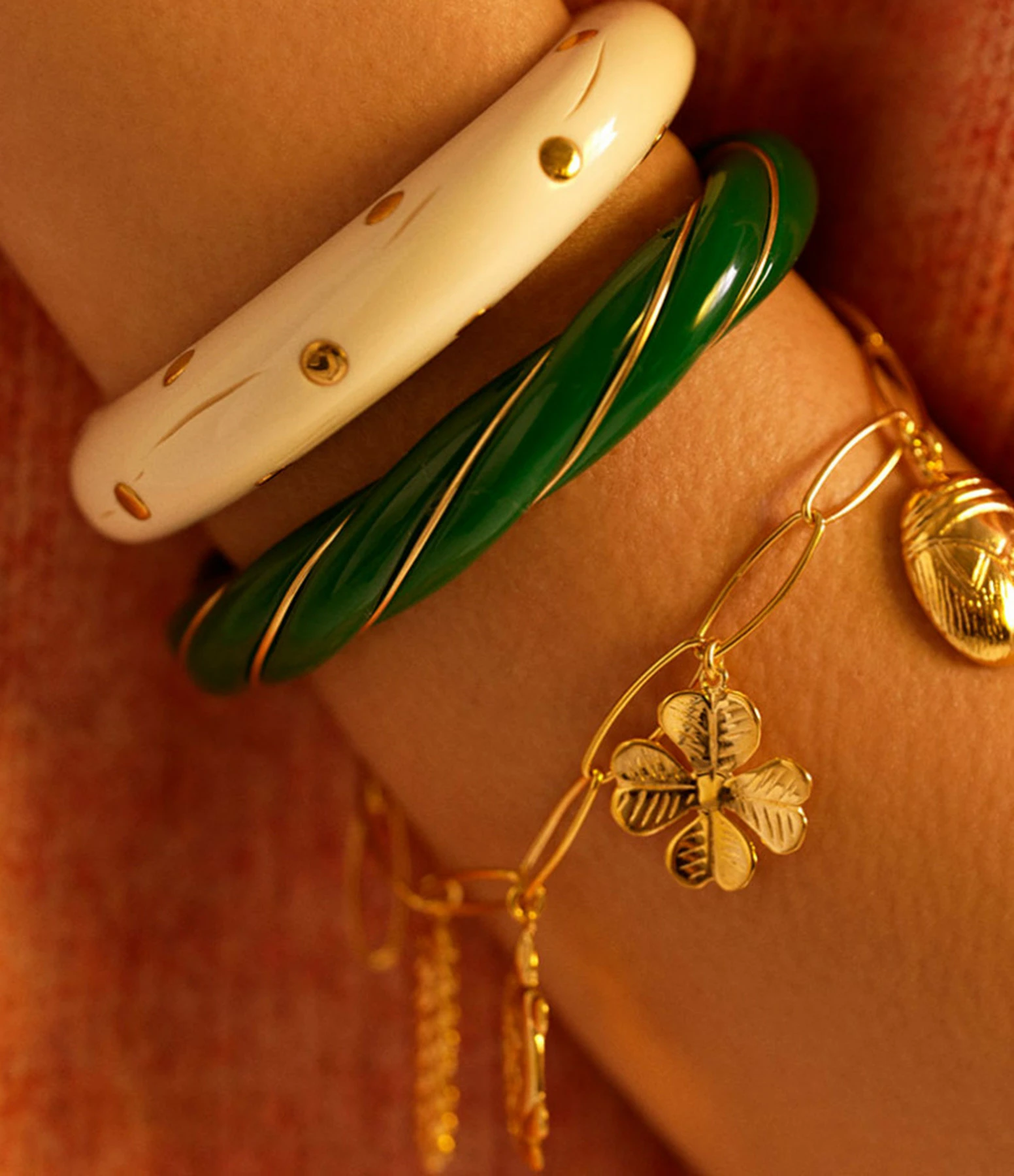 Conseil stylistique : Avec ses couleurs franches et ses volumes généreux, la collection Diana est inspirée par les années 60, les torques hippies et notamment par Diana Ross qui accumulait les jolis bracelets torsadés autour de ses poignets.