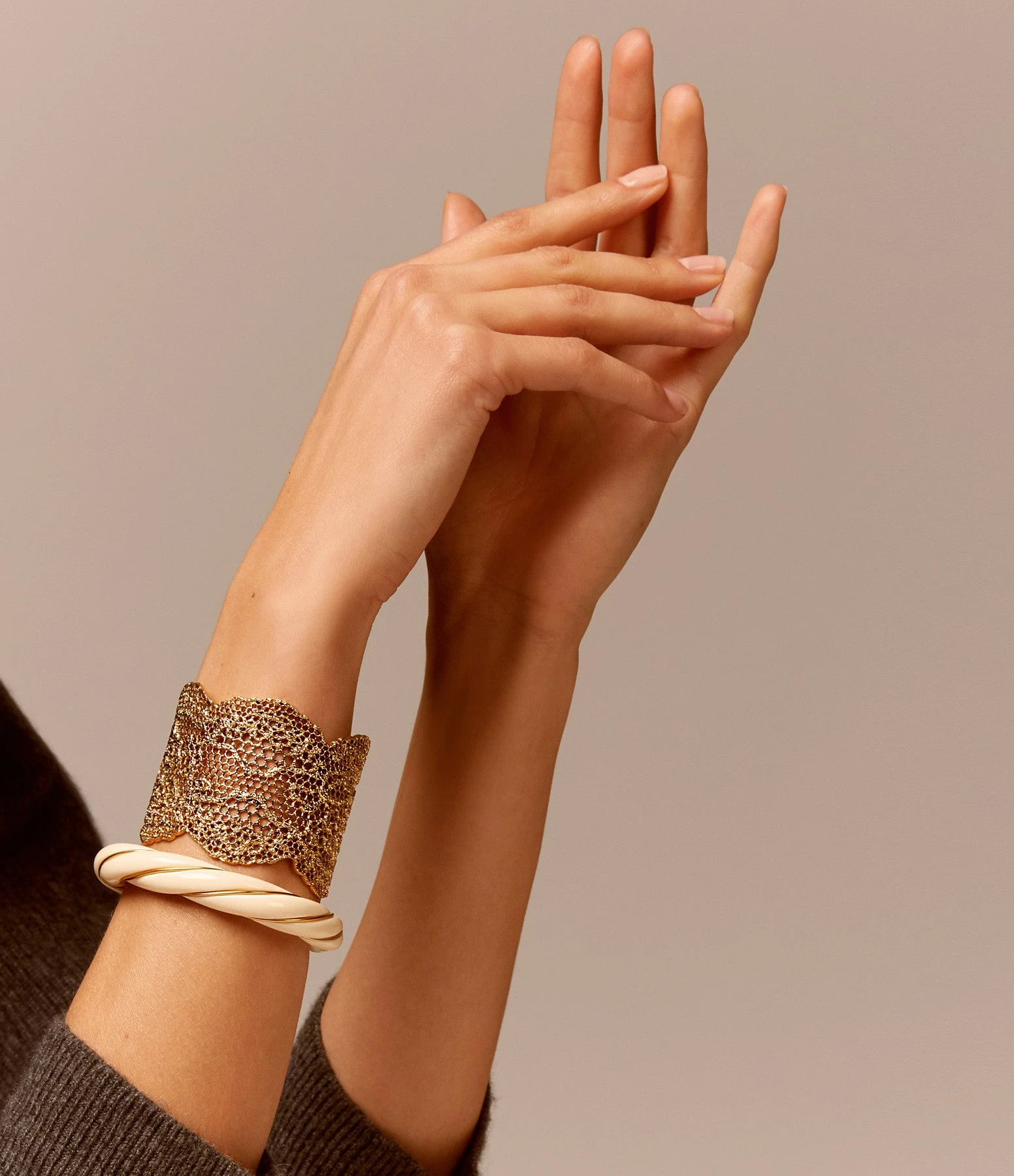 Conseil stylistique : Avec ses couleurs franches et ses volumes généreux, la collection Diana est inspirée par les années 60, les torques hippies et notamment par Diana Ross qui accumulait les jolis bracelets torsadés autour de ses poignets.