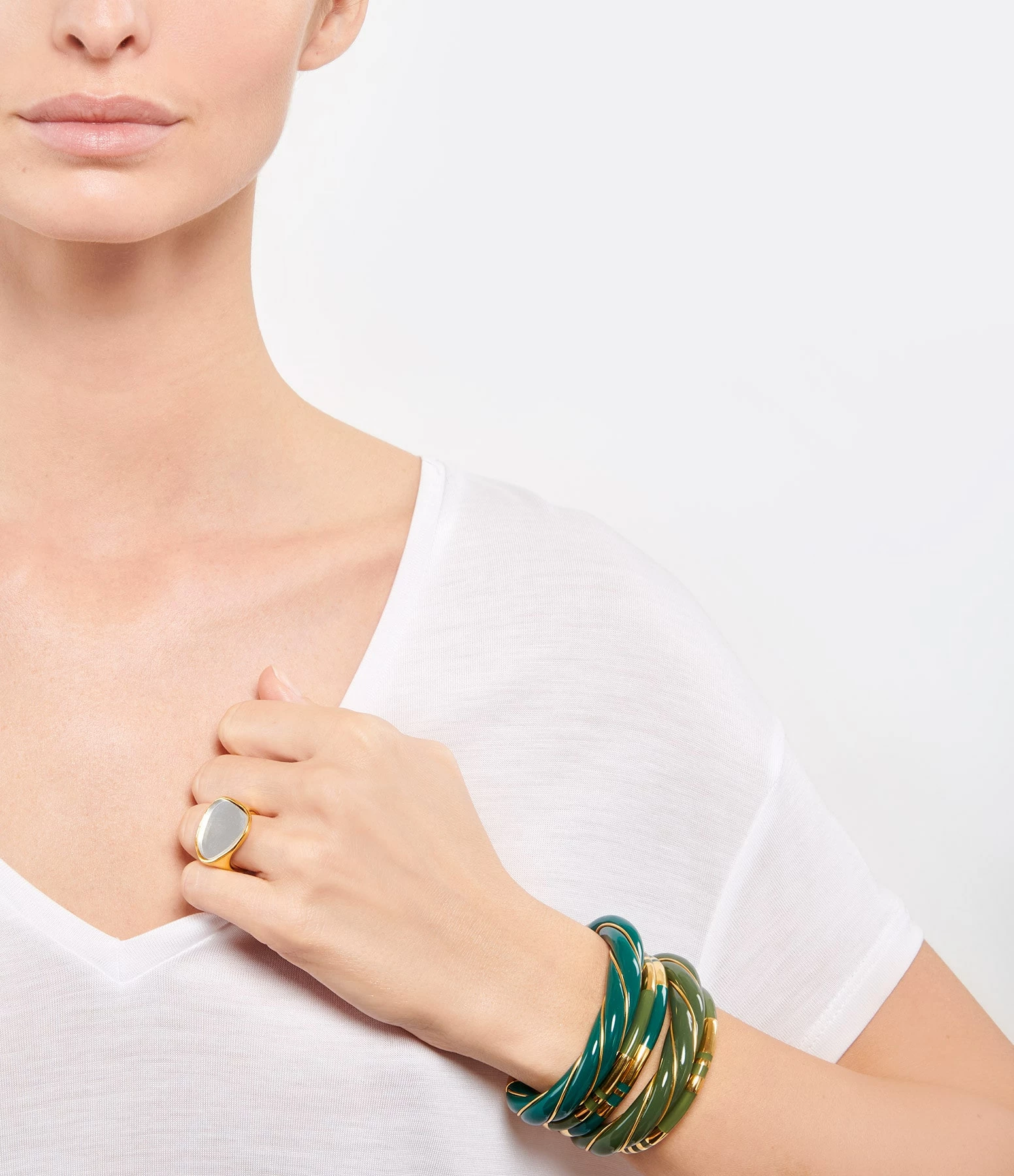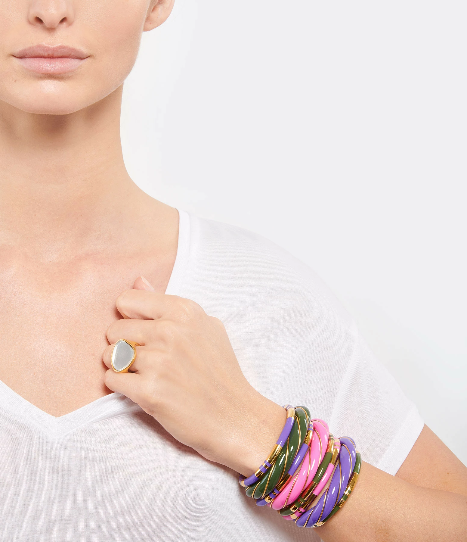 Conseil stylistique : Avec ses couleurs franches et ses volumes généreux, la collection Diana est inspirée par les années 60, les torques hippies et notamment par Diana Ross qui accumulait les jolis bracelets torsadés autour de ses poignets.