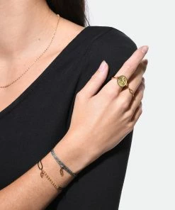 Bague en or jaune composée d’une chaîne souple en maille diamantée (ornée de petites perles facettées).