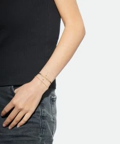 Bracelet sur cordon noir, avec deux fines chaînes en or jaune en maille diamantée (ornée de petites perles facettées).