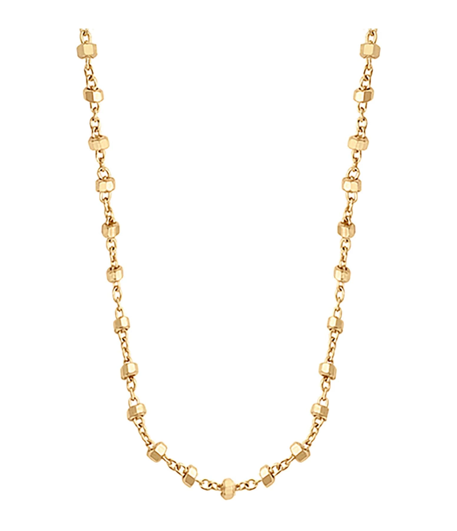 Chaîne seule en maille forçat diamantée (ornée de petites perles facettées) en or jaune. Fermoir à ressort.