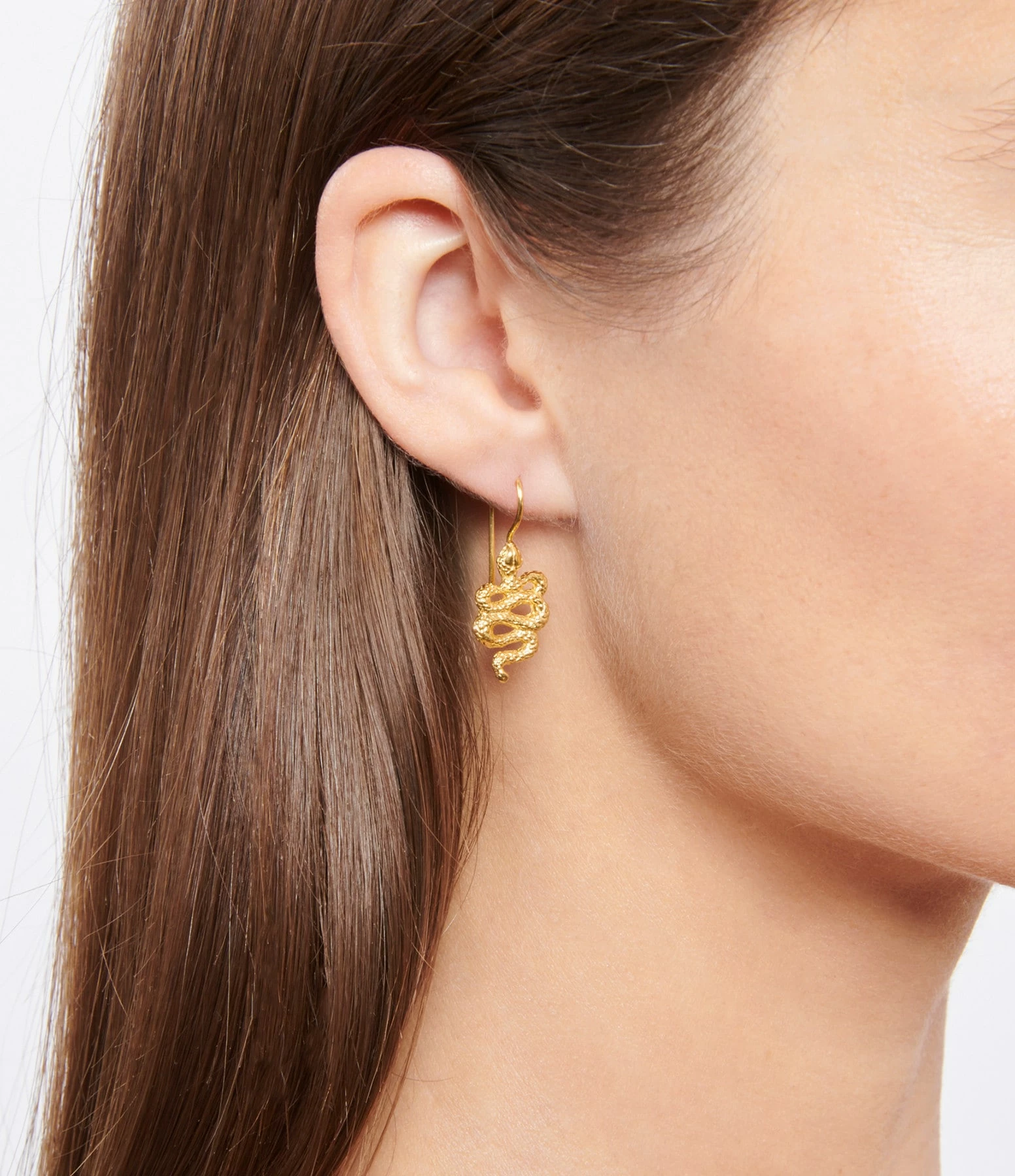 Petite boucle d’oreille serpent en vermeil. Fermoir dormeuse.