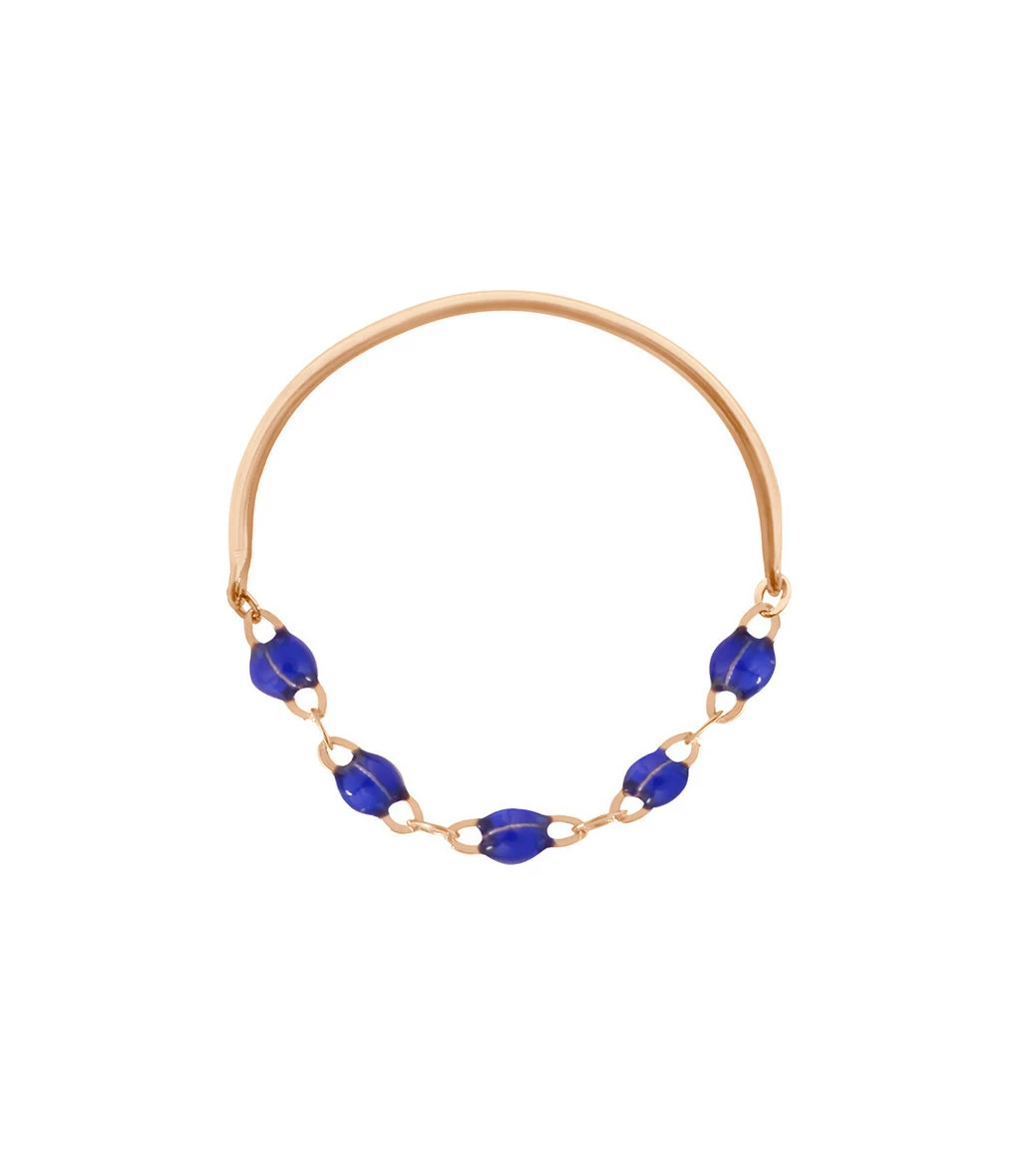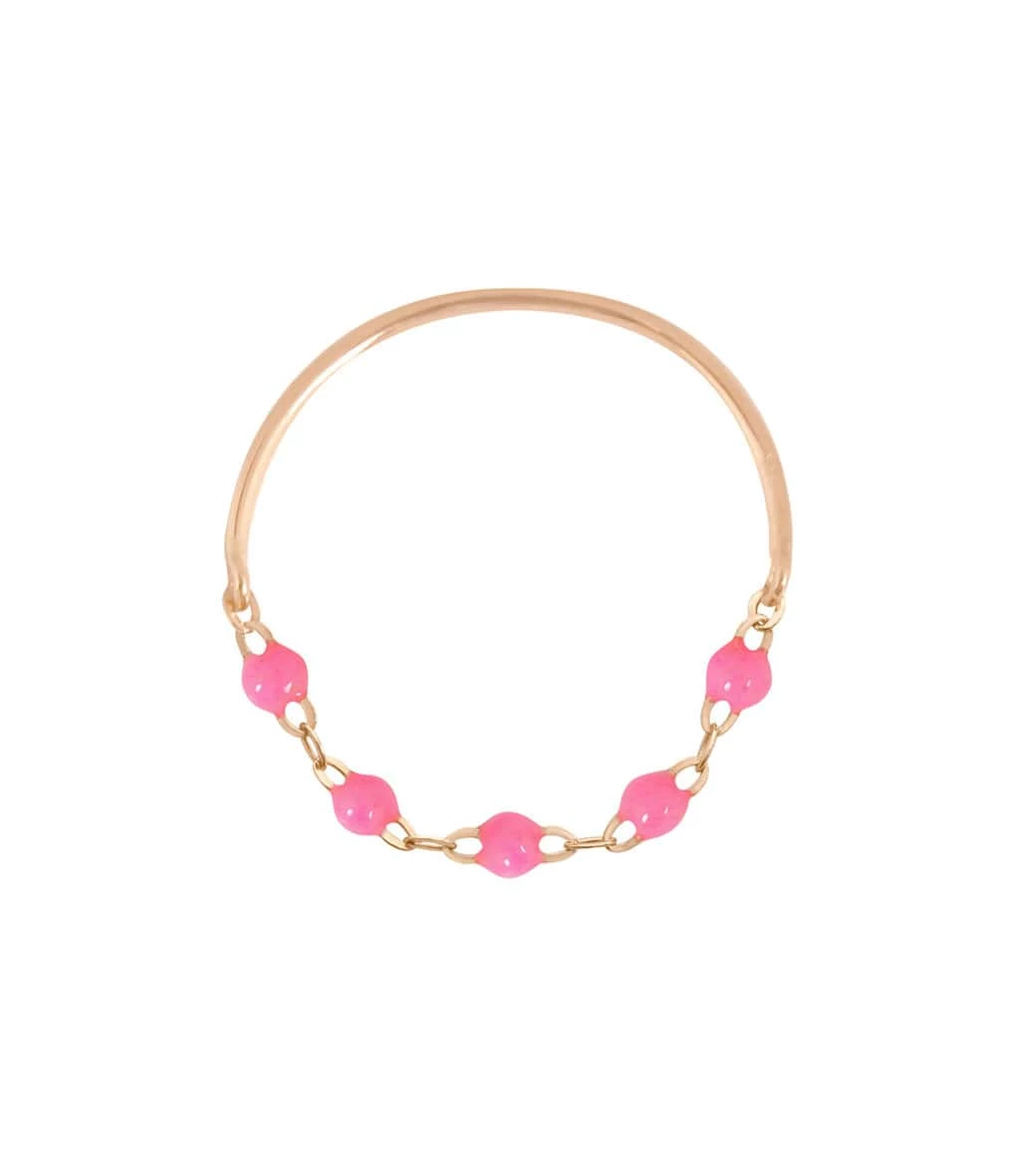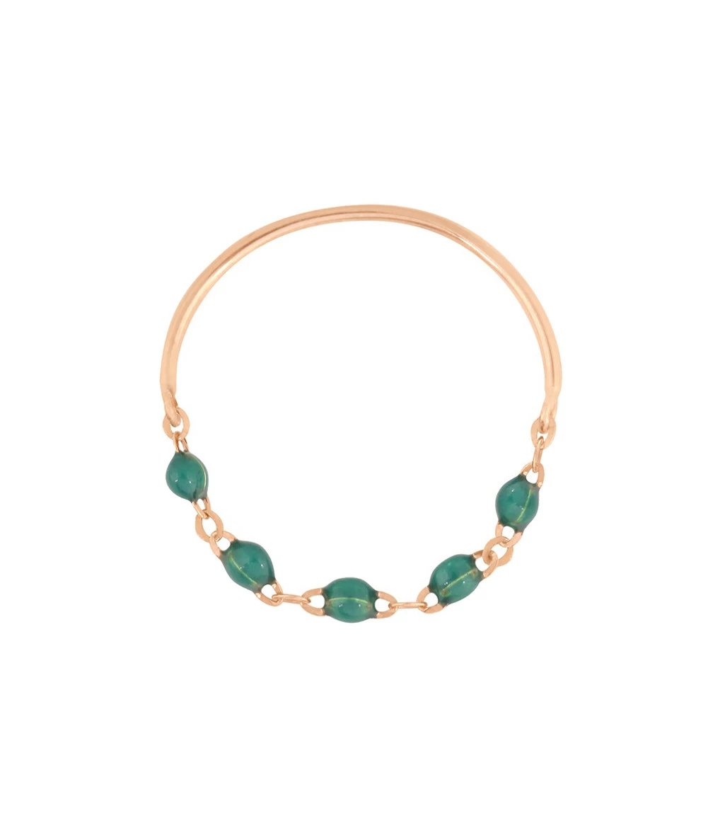 Bague en or, chaînette agrémentée de perles de résine.La fabrication de ce modèle est limitée aux 11 couleurs de résine présentées.