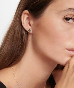 Boucles d’oreilles puces en or jaune et résine. Modèle “croix”. Fermoir poussette. Vendues à la paire.