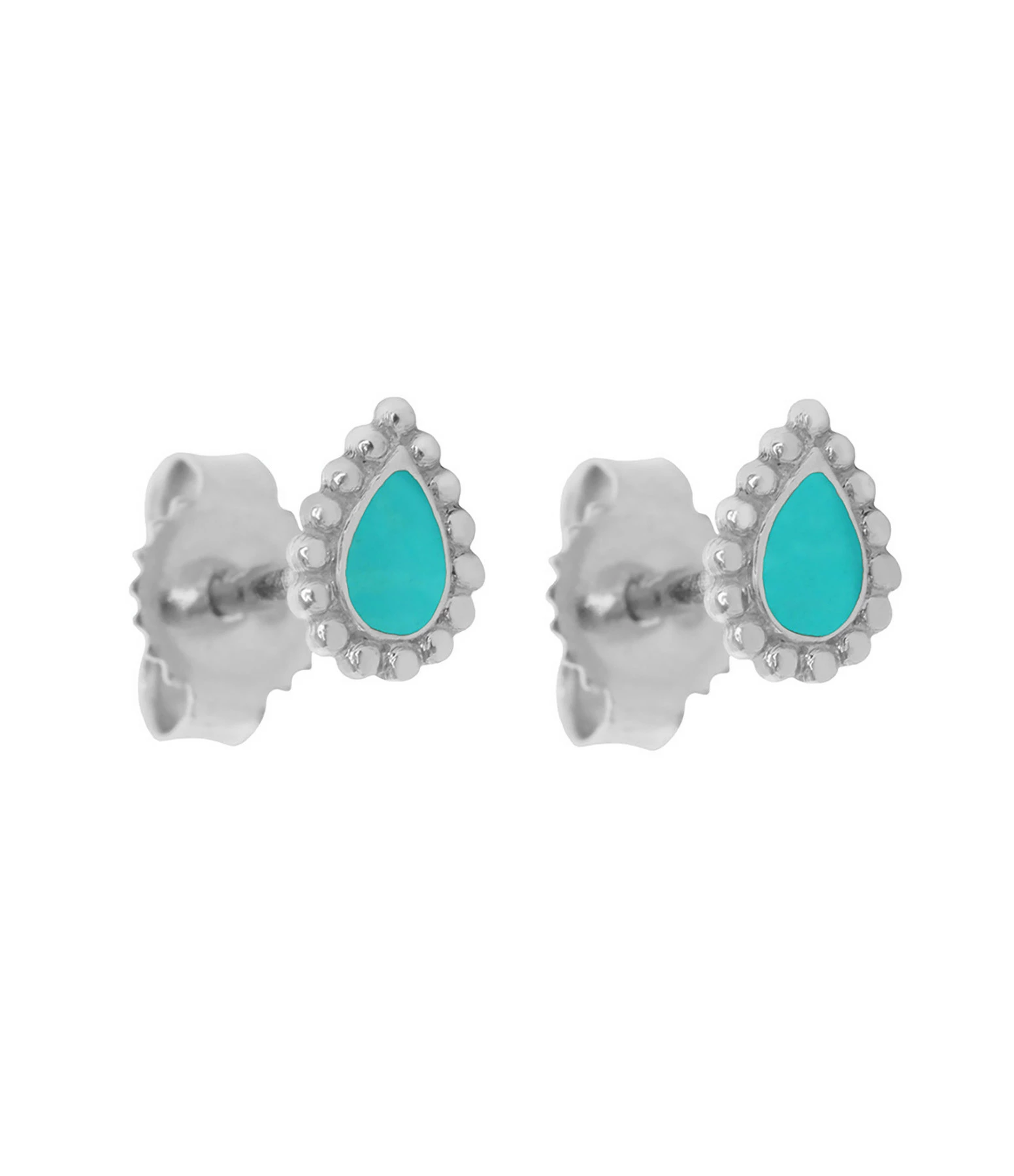 Boucles d’oreilles puces en or blanc. Modèle “goutte”. Fermoir poussette. Vendues à la paire.