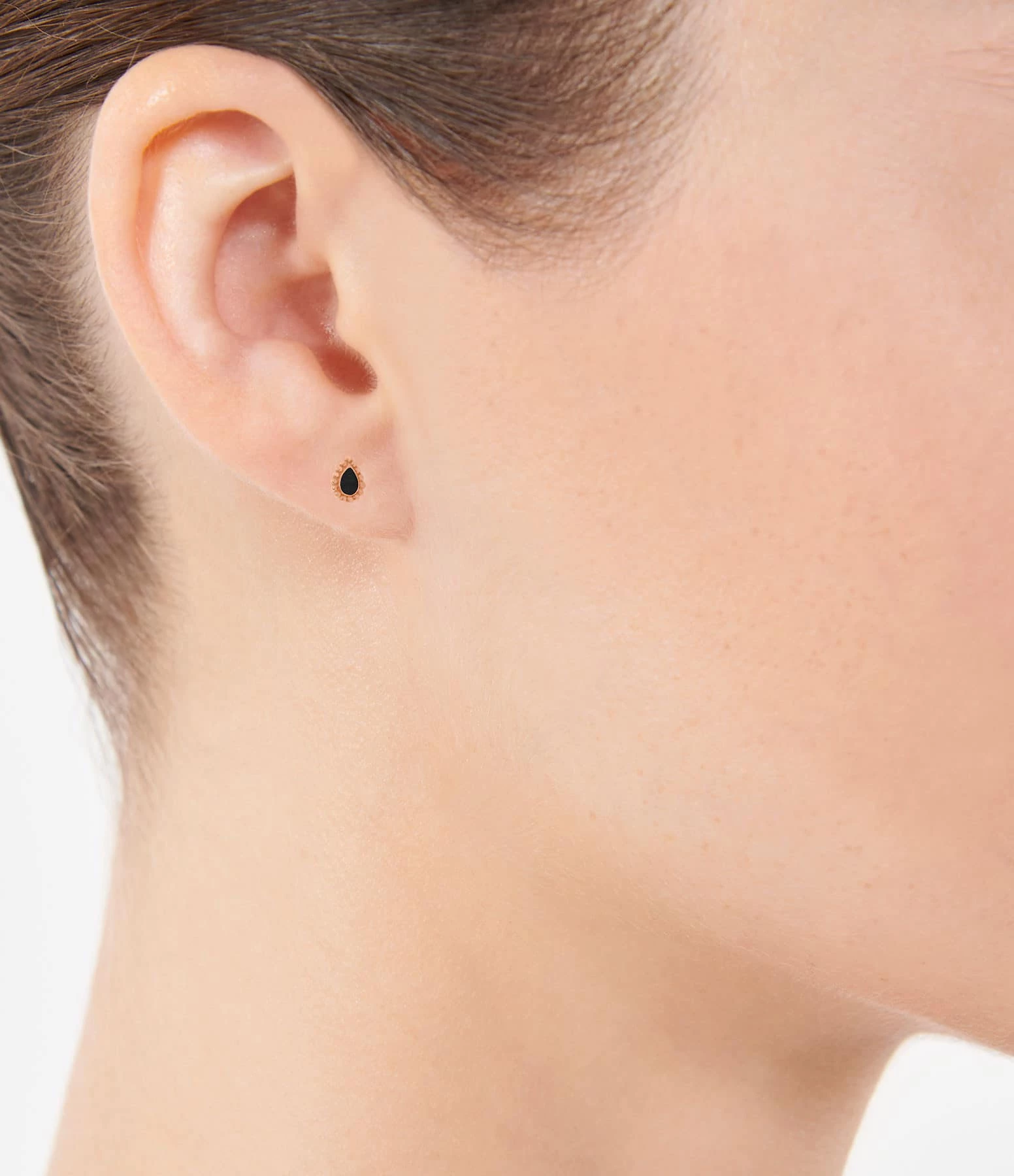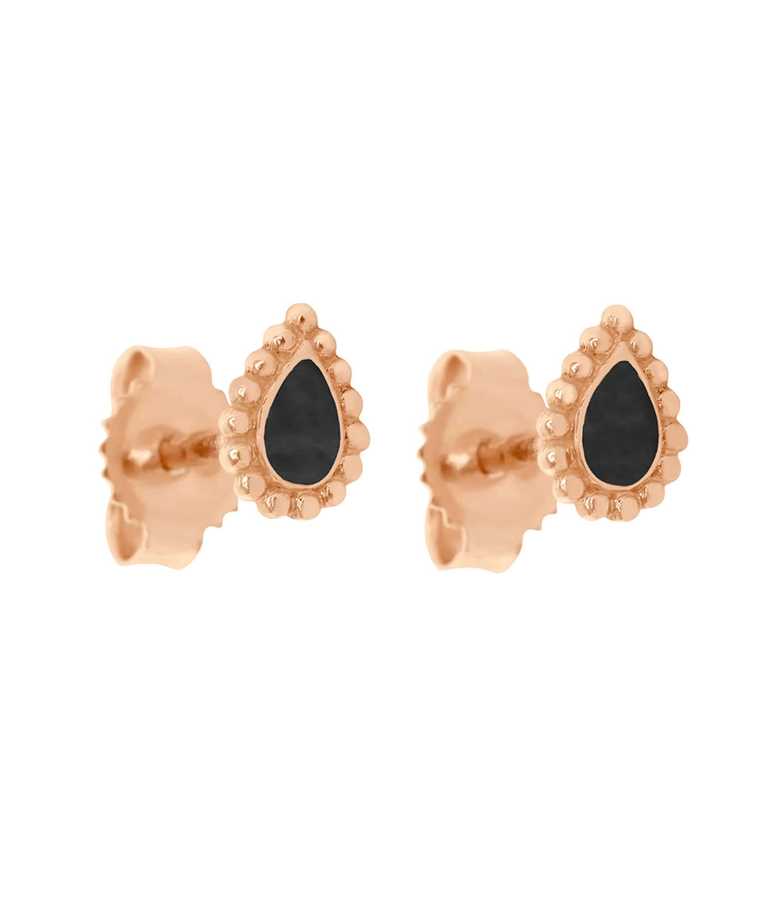 Boucles d’oreilles puces en or rose. Modèle “goutte”. Fermoir poussette. Vendues à la paire.