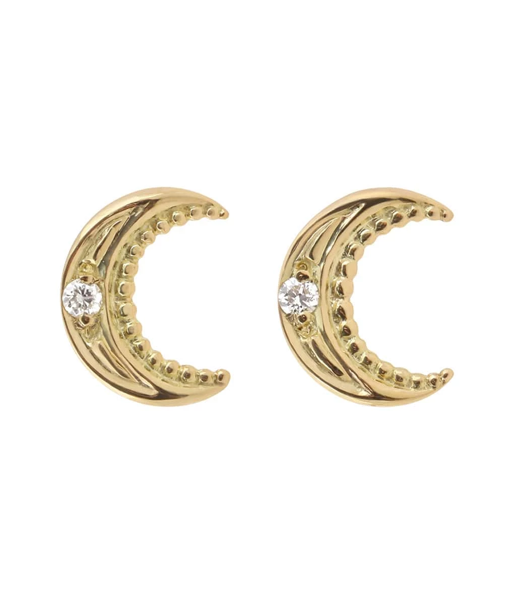 Boucles d’oreilles puces en or serties d’un diamant. Fermoir poussette. Vendues à la paire.