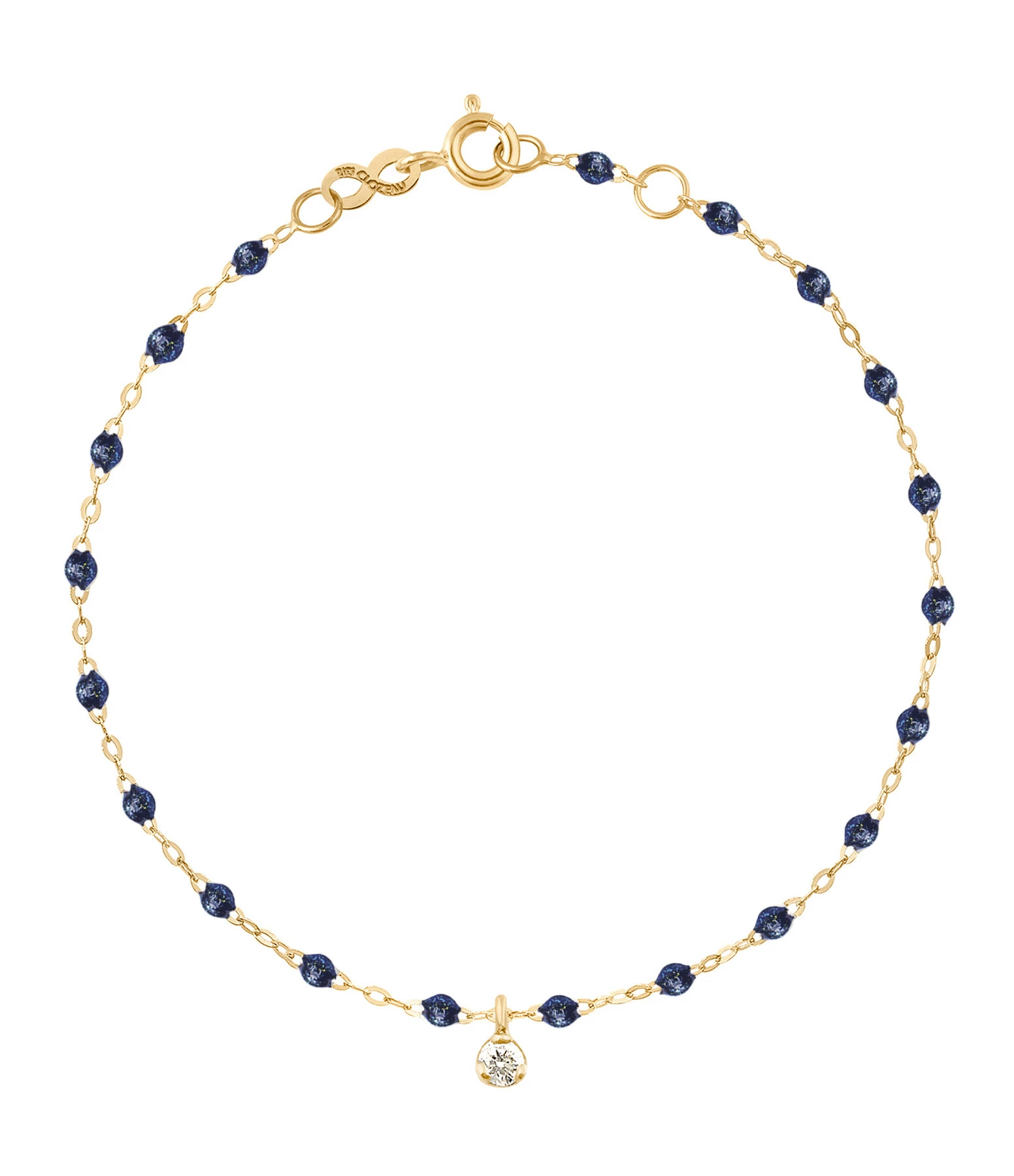 Composition : Or 18 carats (750 millièmes), diamant et résine.