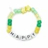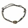 Bracelet sur chaîne en or jaune agrémenté de perles de résine et d’un pendentif en forme de croix serti de diamants. Fermoir classique à ressort avec contre-anneau.