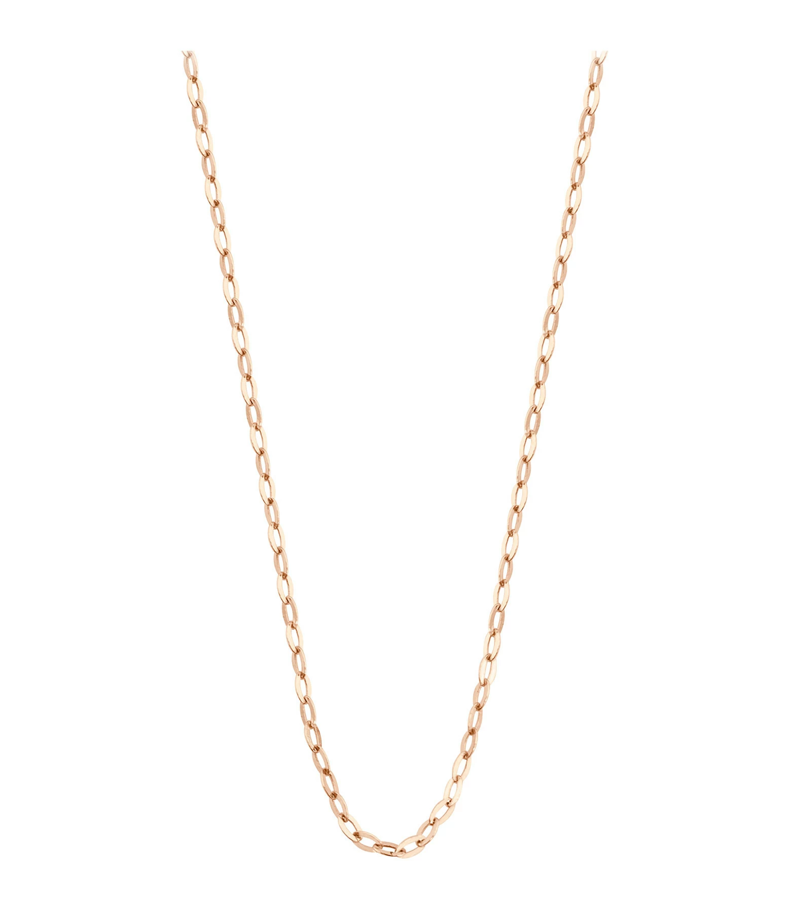 Chaîne en or jaune, gris ou rose. Vendue seule. Fermoir classique à ressort avec contre-anneau. A porter avec les charms et pendentifs de la marque Gigi Clozeau.