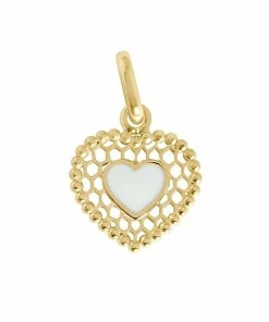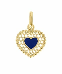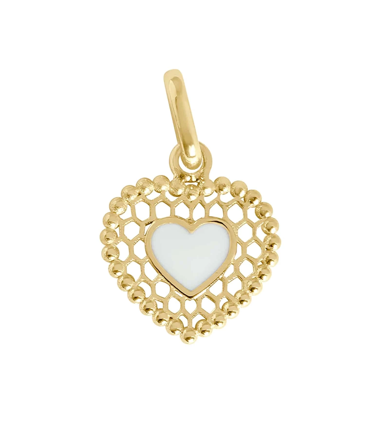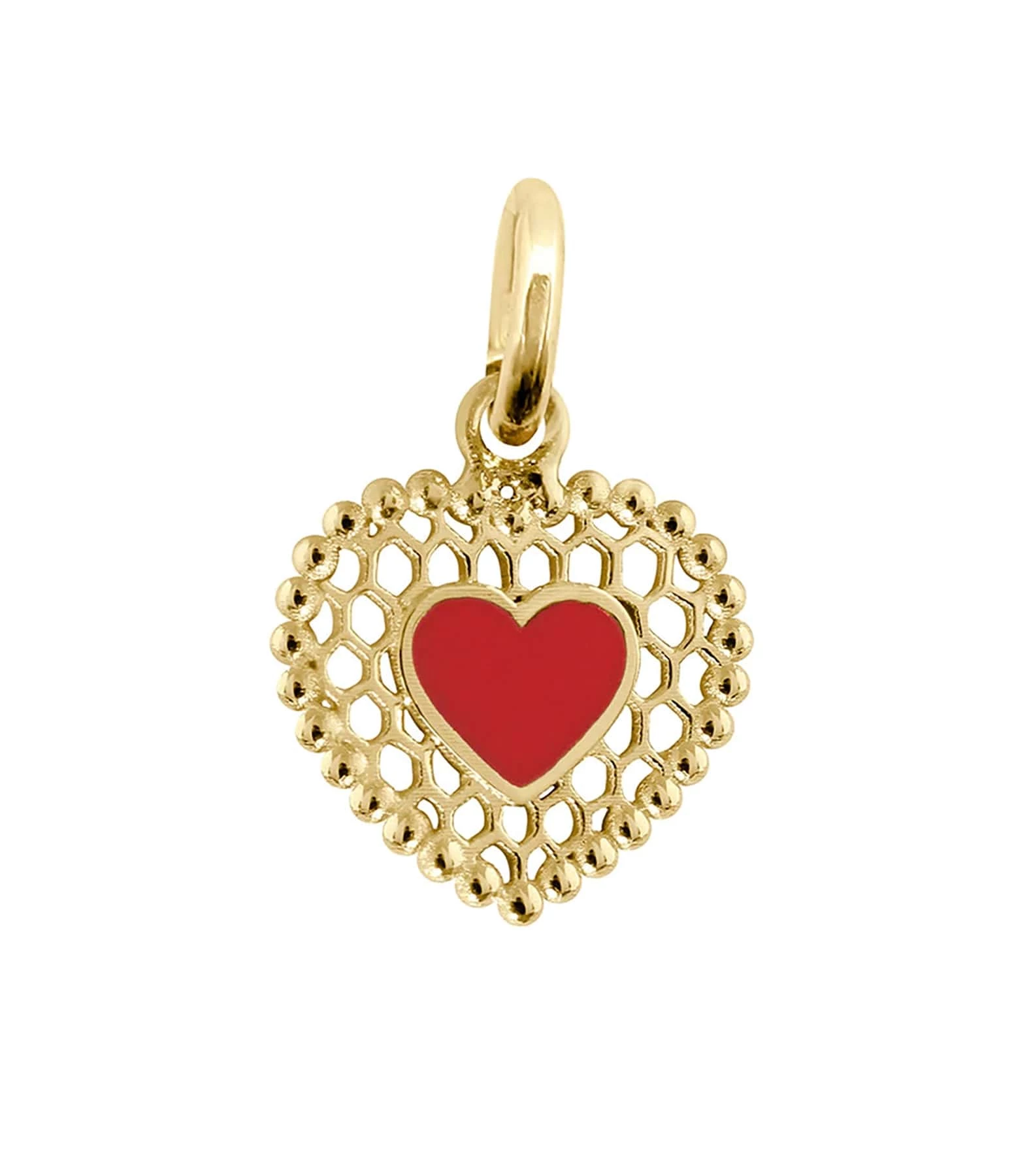 Pendentif cœur dentelle en or jaune agrémenté de résine colorée.