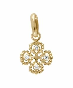 Pendentif Trèfle en or, agrémenté de quatre diamants blancs.