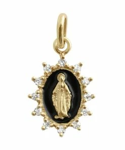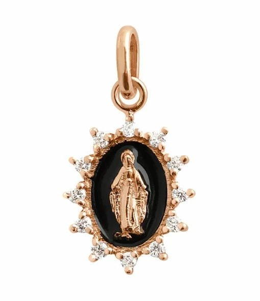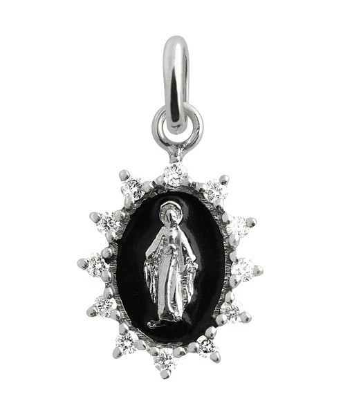 Pendentif médaille Madone serti de 12 diamants blancs.