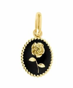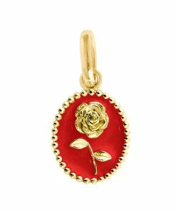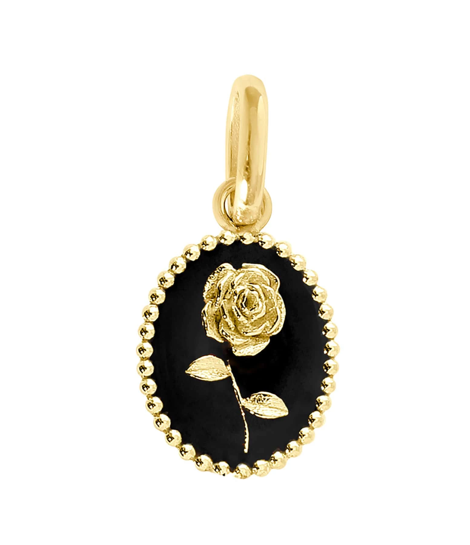 Pendentif médaille Rose en or jaune agrémenté de résine.