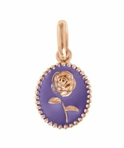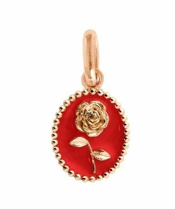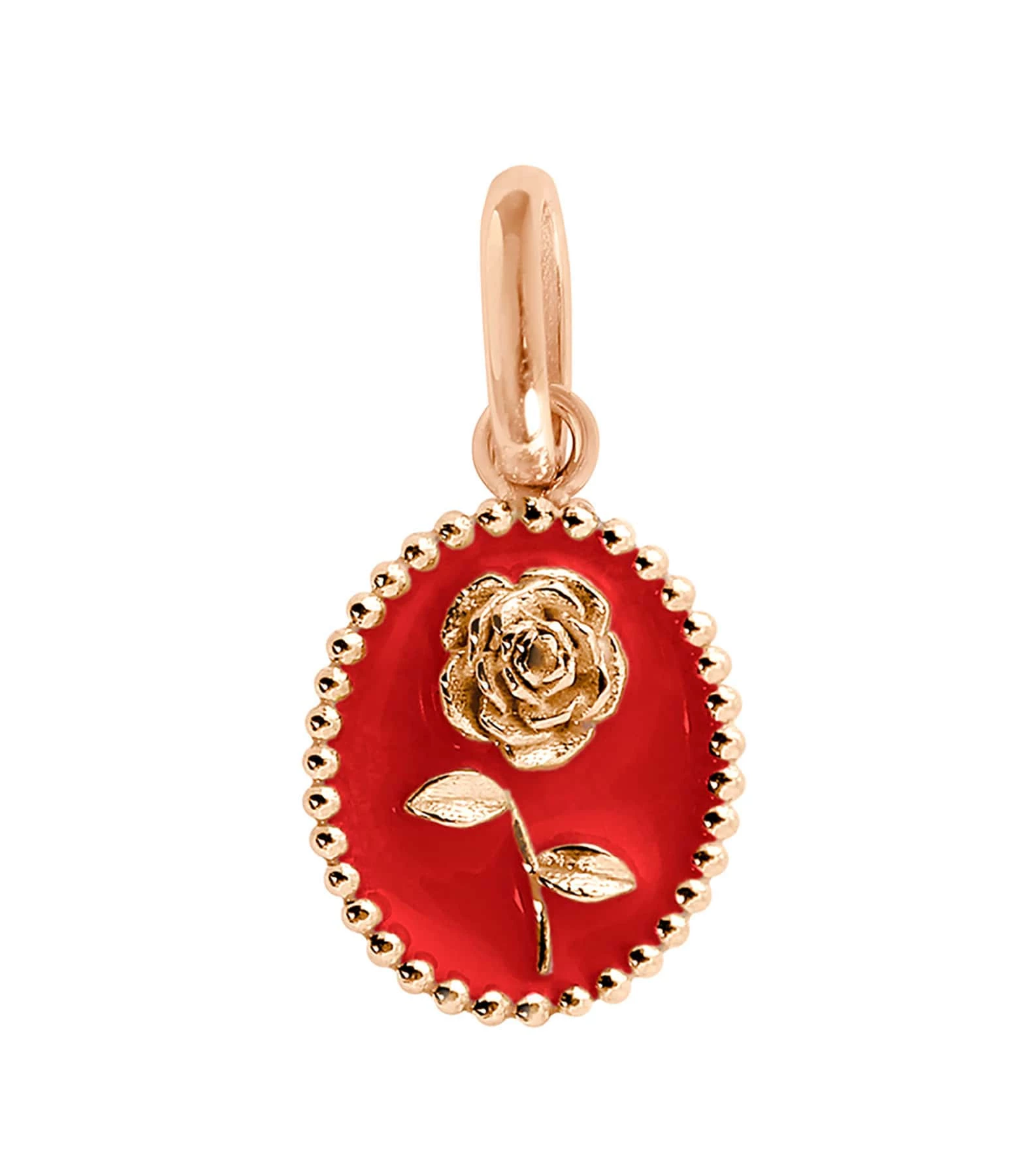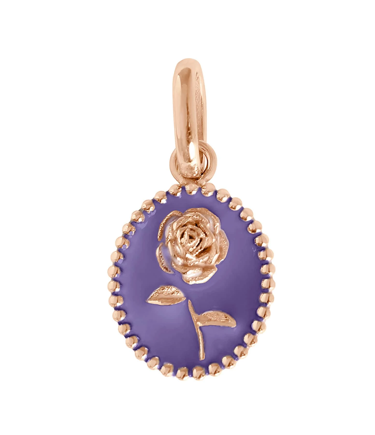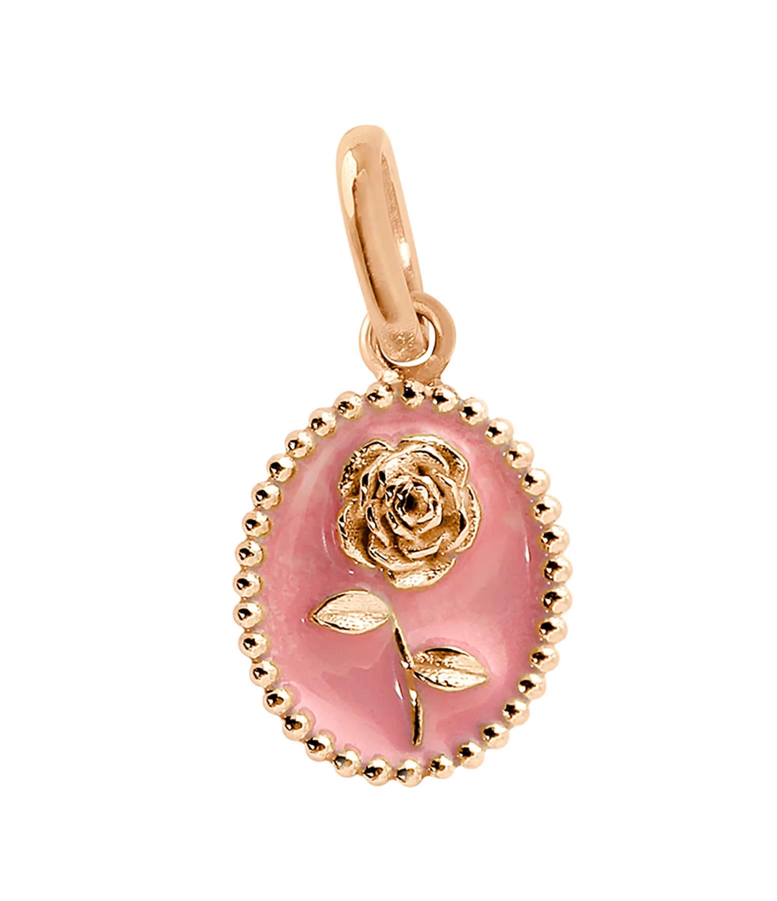 Pendentif médaille Rose en or rose agrémenté de résine.