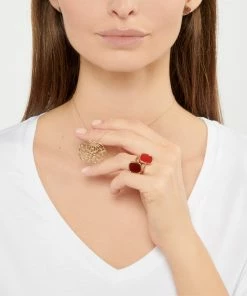 Bague en or rose avec motif carré en pierre de corail.