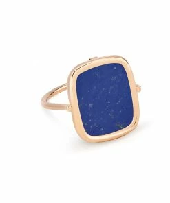 Bague en or rose avec motif carré en lapis.