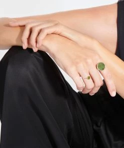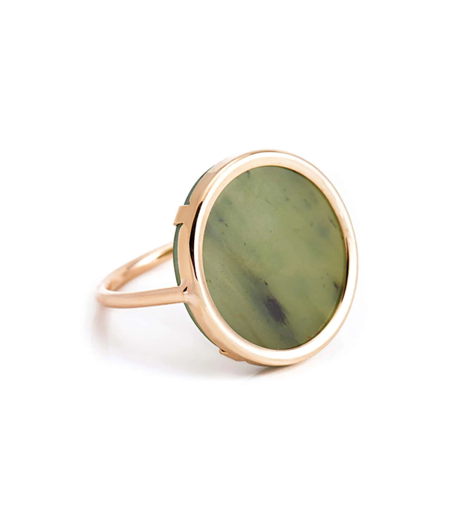 Bague en or rose avec un disque en pierre de jade.