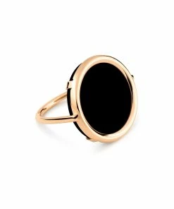 Bague en or rose avec un disque en onyx.
