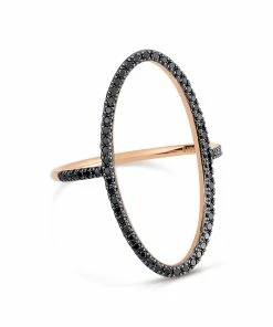 Bague en or rose avec motif ovale serti de diamants noirs.