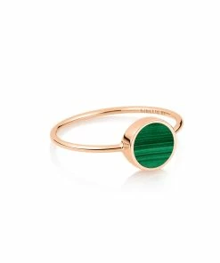 Bague en or rose avec mini disque en pierre de malachite verte.