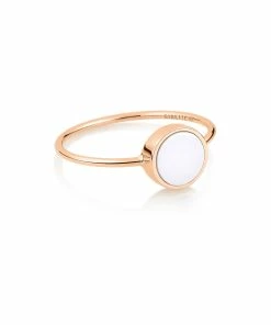 Bague en or rose avec mini disque en pierre d’Agate Blanche.
