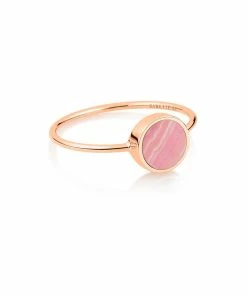 Bague en or rose avec mini disque en pierre de rhodochrosite rose.