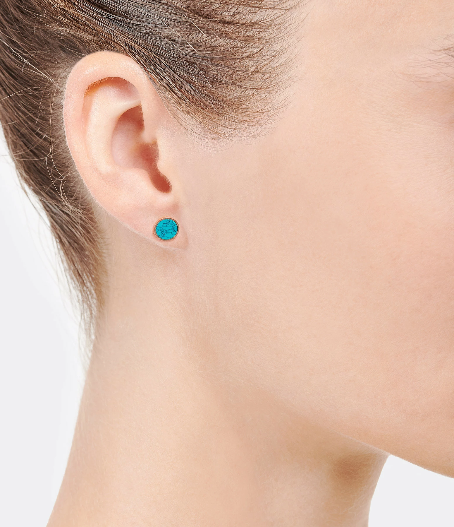 Boucle d’oreille en or rose agrémentées d’une pierre turquoise. Vendue à l’unité.