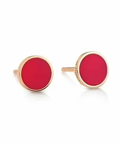 Boucles d’oreilles en or rose agrémentées d’une pierre de Corail. Fermoir poussette.