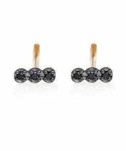 Boucles d’oreilles en or rose serties de diamants noirs.