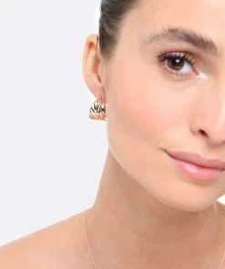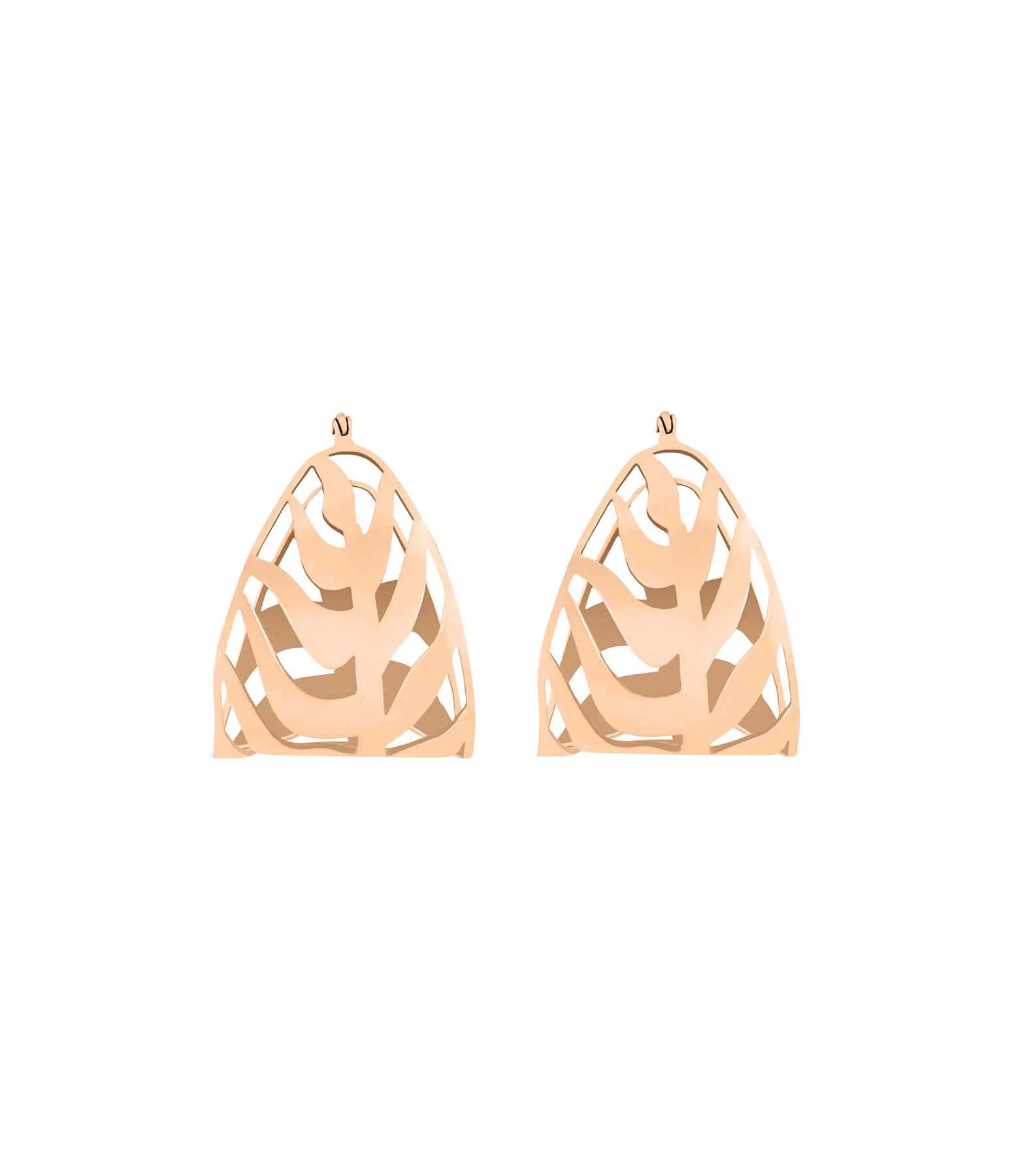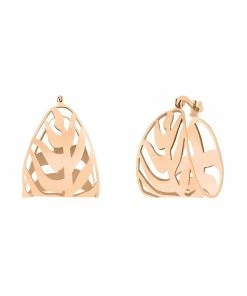 Boucles d’oreilles créoles en or rose en forme de feuille de palmier. Fermoir cliquet. Vendues à la paire.