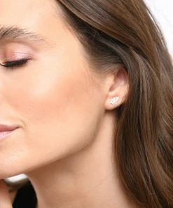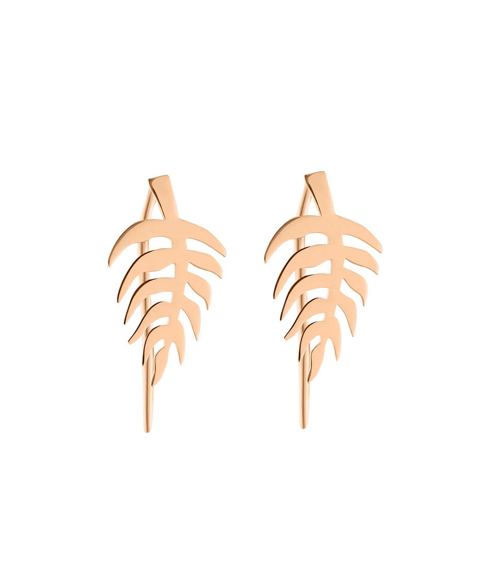 Boucles d’oreilles puces en or rose en forme de feuille de palmier. Fermoir poussette. Vendues à la paire.