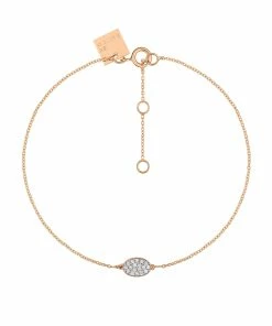 Bracelet sur chaîne en or rose avec pendentif ovale serti de diamants blancs. Fermoir classique à ressort.