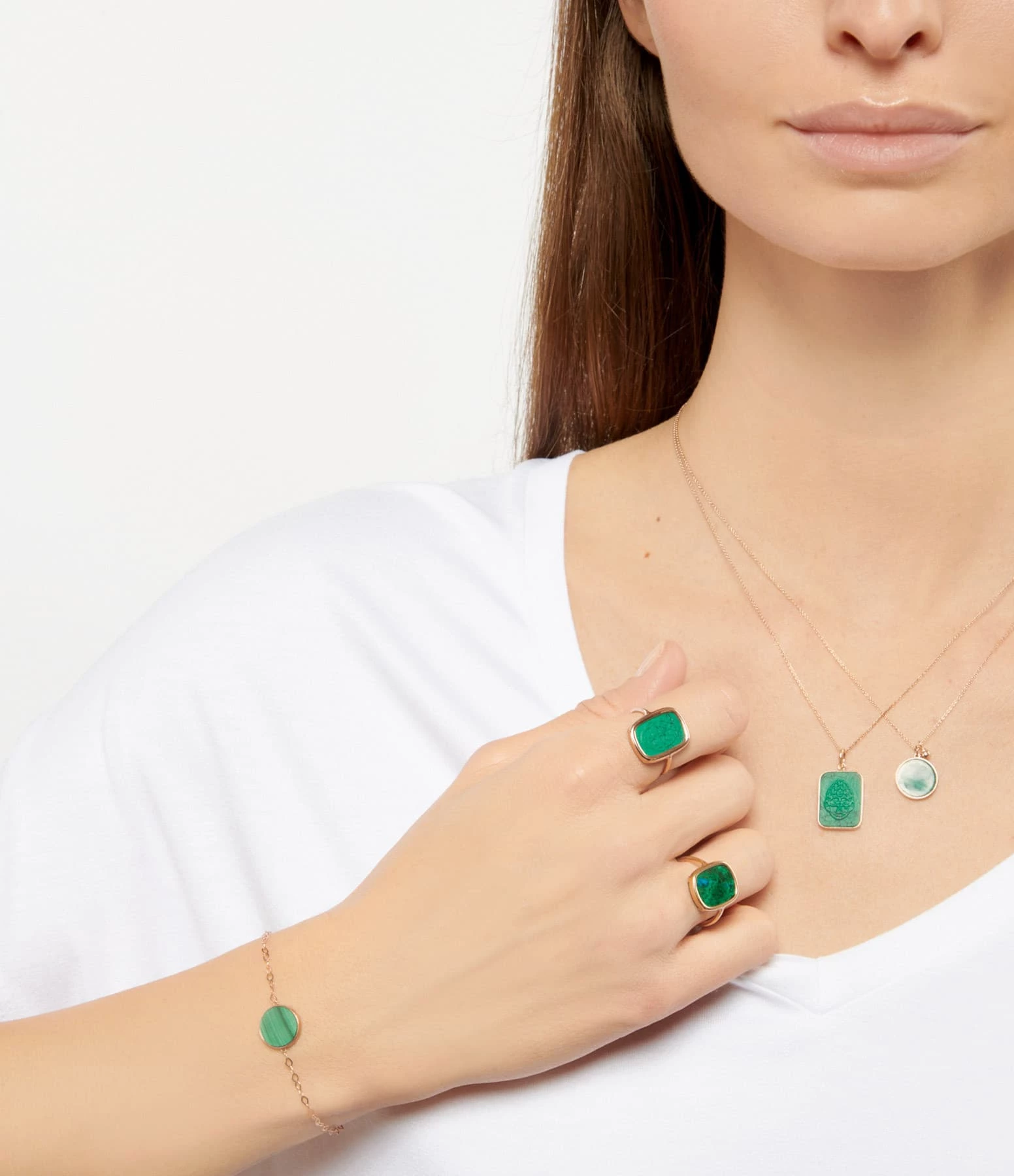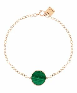 Bracelet sur chaîne en or rose agrémenté d’une pierre de malachite vert. Fermoir classique à ressort.