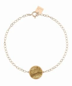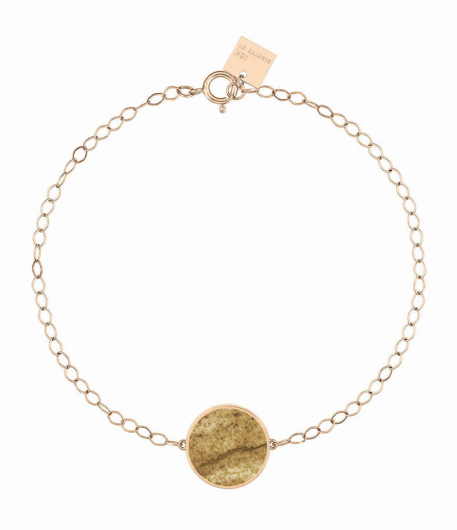 Bracelet en or rose agrémenté d’un disque en jaspe. Fermoir anneau ressort.