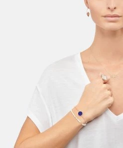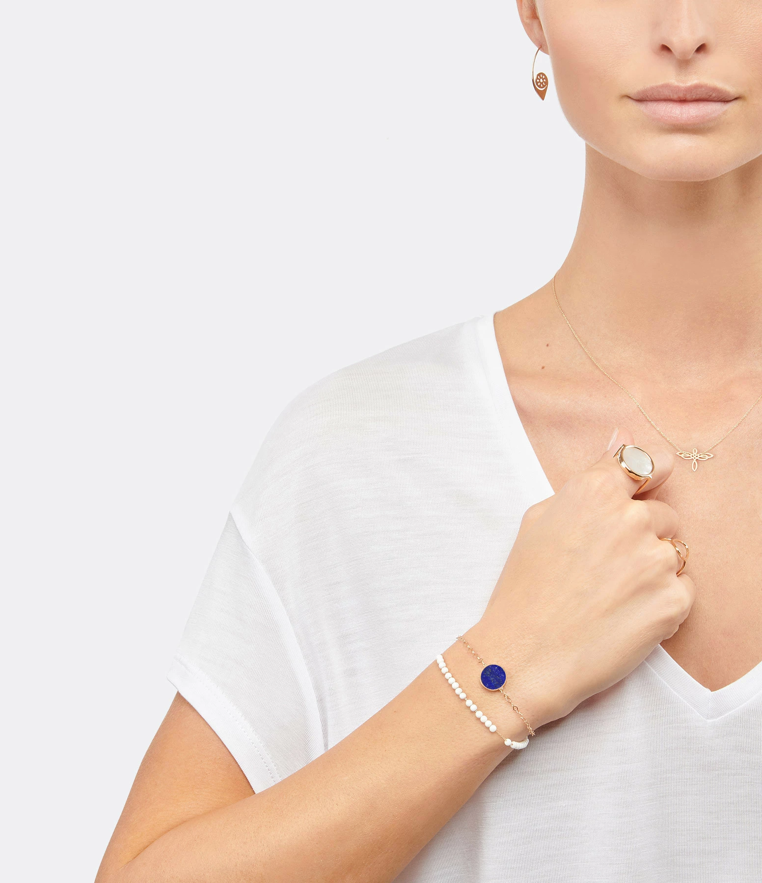 Bracelet sur chaîne en or rose agrémenté d’une pierre de Lapis Lazuli. Fermoir classique à ressort.