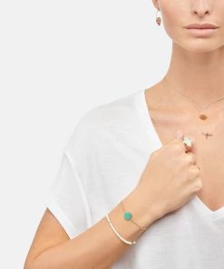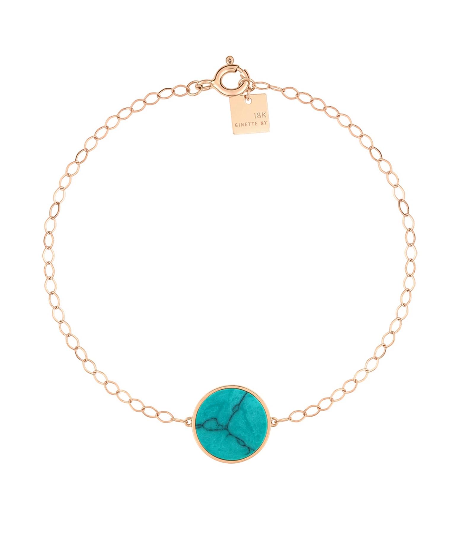 Bracelet sur chaîne en or rose agrémenté d’une pierre de Turquoise. Fermoir classique à ressort.