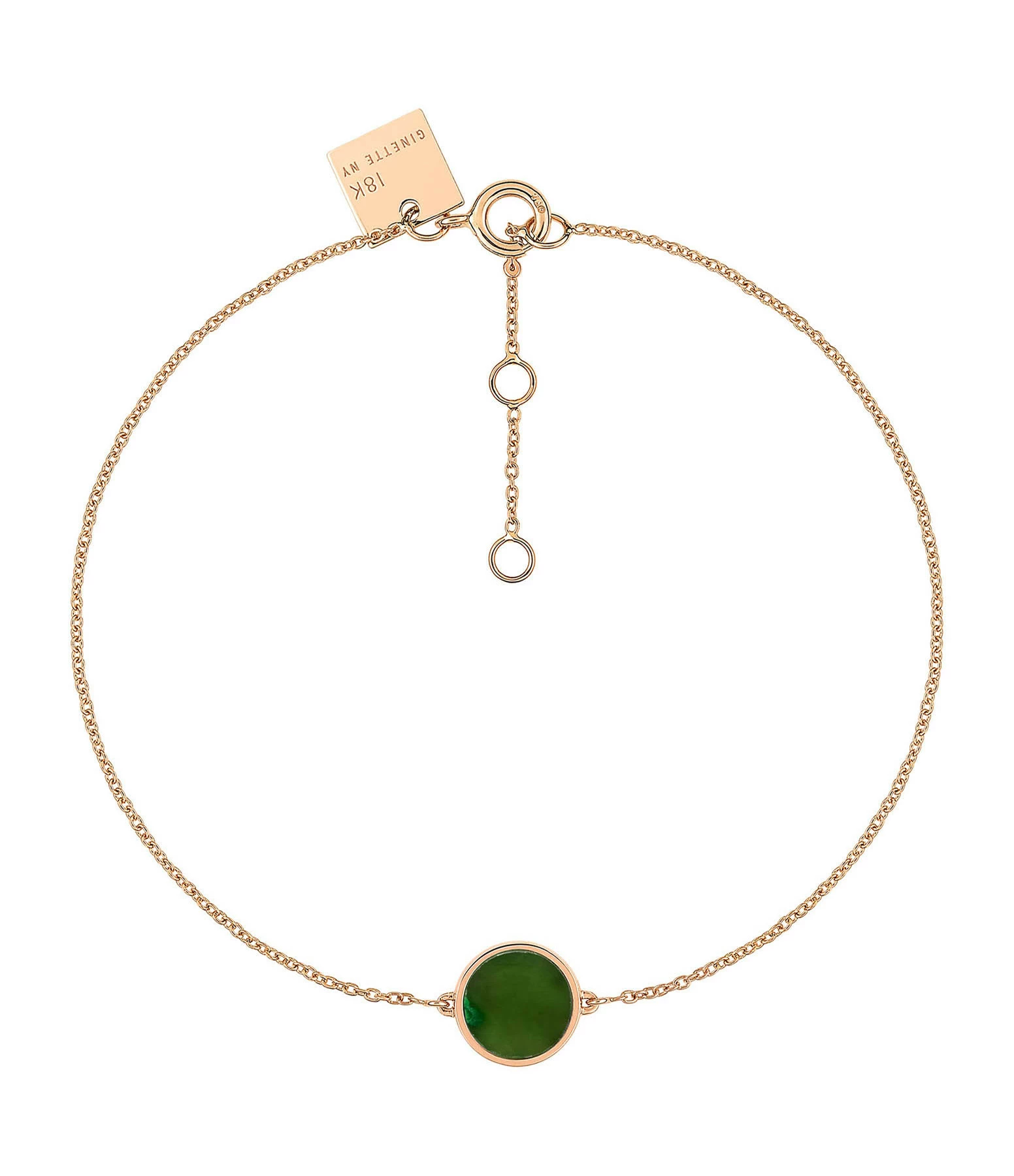 Bracelet sur chaîne en or rose avec pendentif en jade verte. Fermoir classique à ressort.